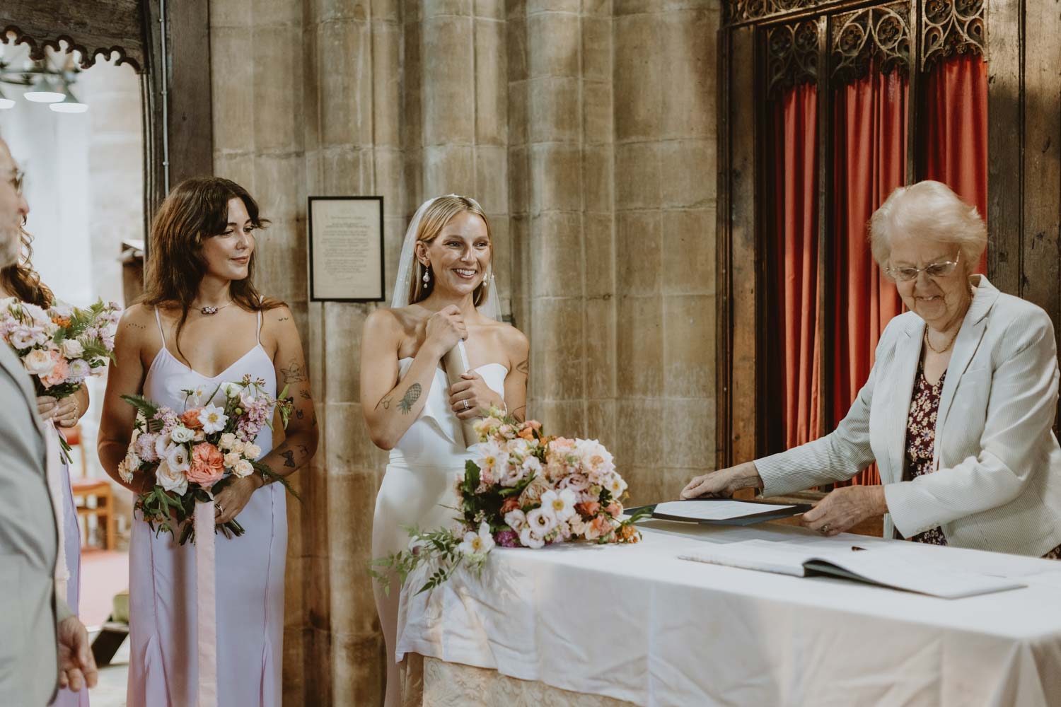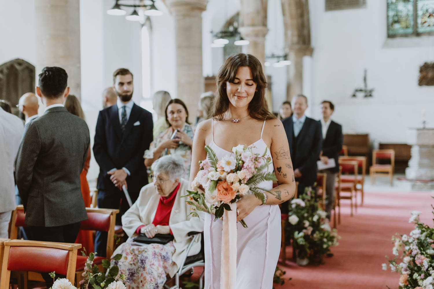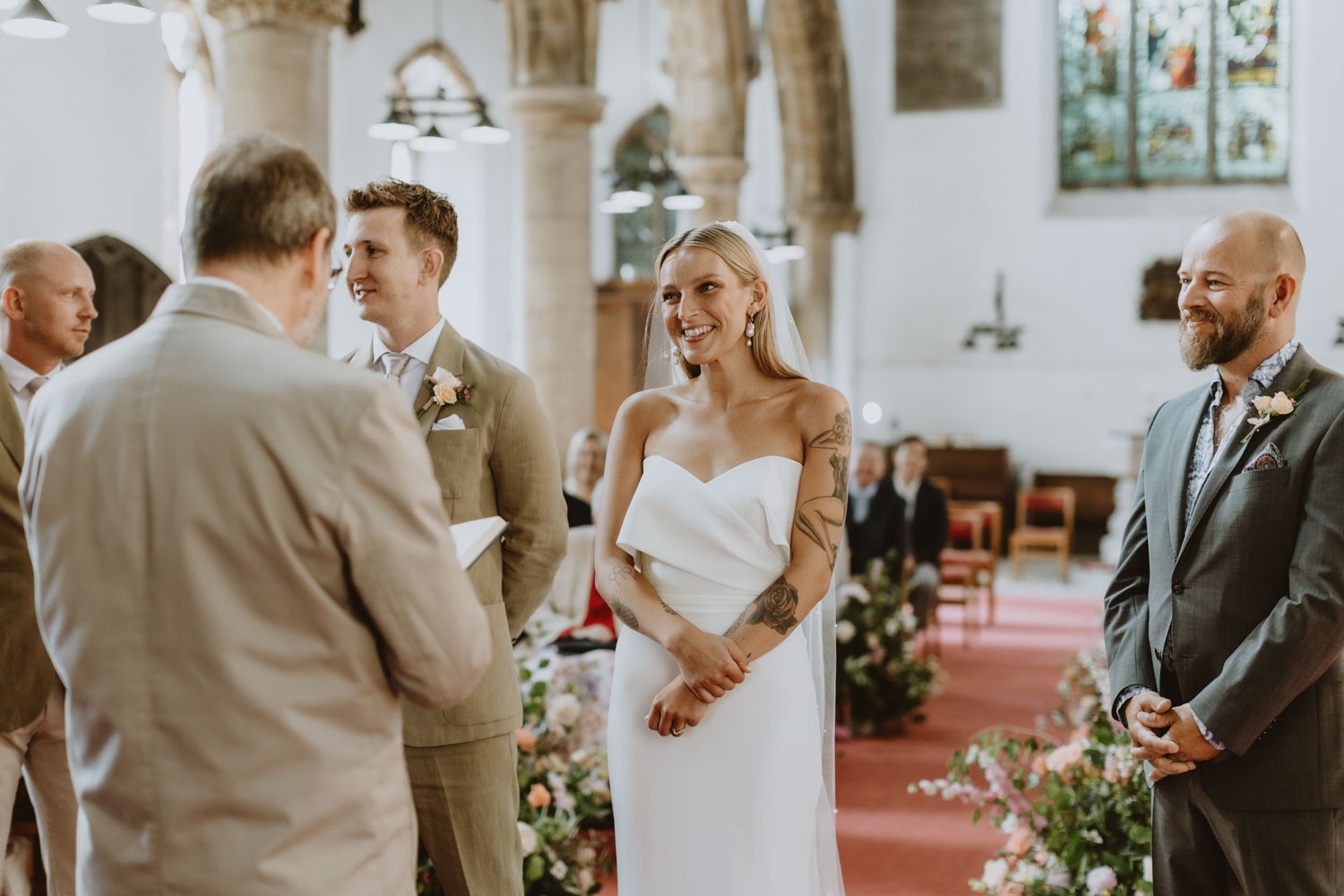 Langar Hall was the perfect backdrop for their day — full of character, warmth, and color. The couple kept things laid-back and relaxed, allowing the day to unfold naturally. There was no fuss, just genuine moments: laughter during the speeches, quiet smiles exchanged during the vows, and the kind of warmth that you can’t stage. They were married at the charming St Andrew’s Church, just a stone’s throw from the venue — a beautiful setting for an intimate and heartfelt ceremony.