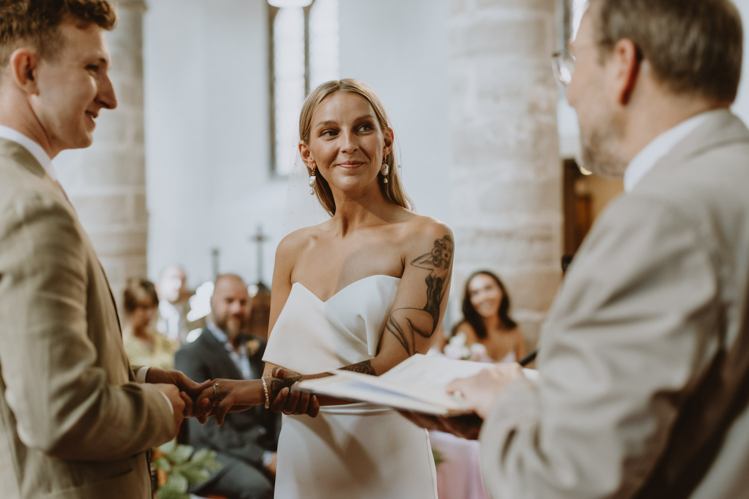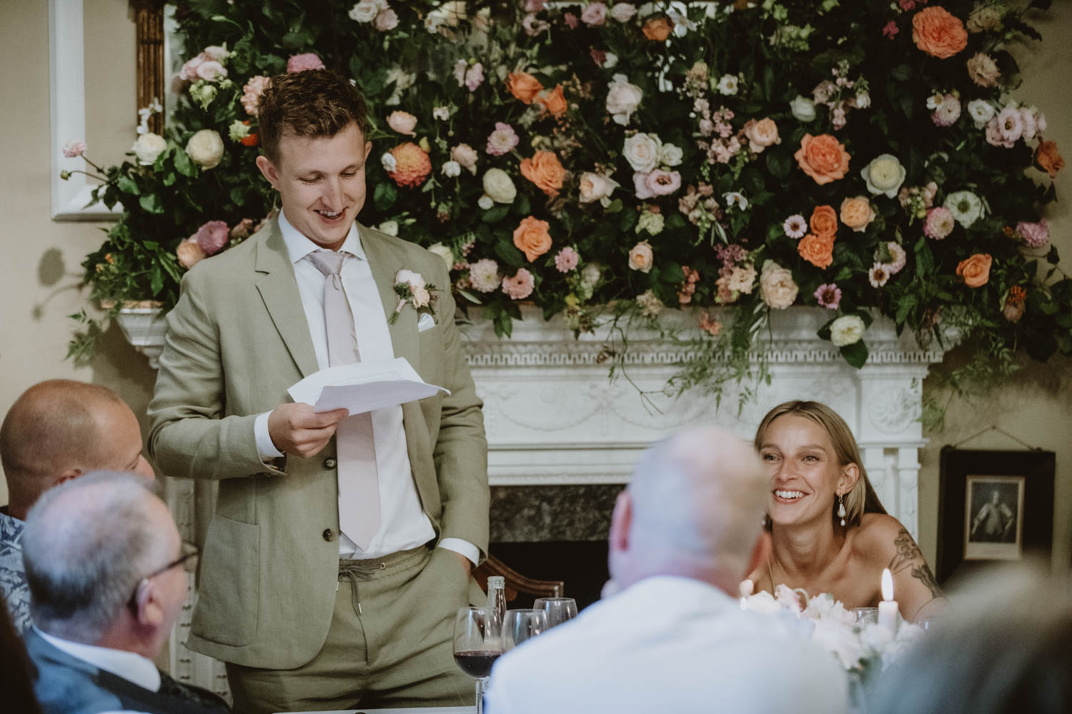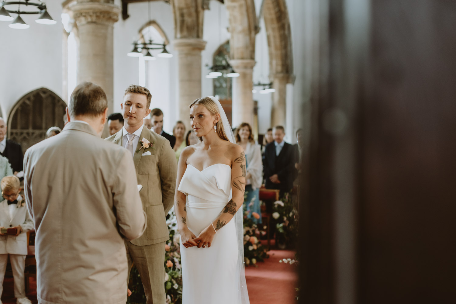 Langar Hall was the perfect backdrop for their day — full of character, warmth, and color. The couple kept things laid-back and relaxed, allowing the day to unfold naturally. There was no fuss, just genuine moments: laughter during the speeches, quiet smiles exchanged during the vows, and the kind of warmth that you can’t stage. They were married at the charming St Andrew’s Church, just a stone’s throw from the venue — a beautiful setting for an intimate and heartfelt ceremony.